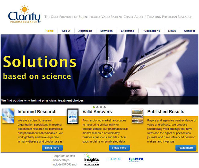 Clarity Pharma Research provides custom patient-chart/treating physician research in the Americas, Europe, Asia and beyond. Our scientists have 30 years of experience researching pharmaceutical products from pre-launch to patent expiration. We size markets (epidemiology), measure patient and product share, track uptake, enhance forecasting, describe current treatment patterns, gauge clinical utility, fill in the gaps commonly found in secondary or syndicated data and more. The FDA has accepted our findings to modify clinical trial development, our data have aligned with SEER and our research has withstood the scrutiny of peer-reviewed medical journals and conferences. We bring clarity to clients’ business decisions.