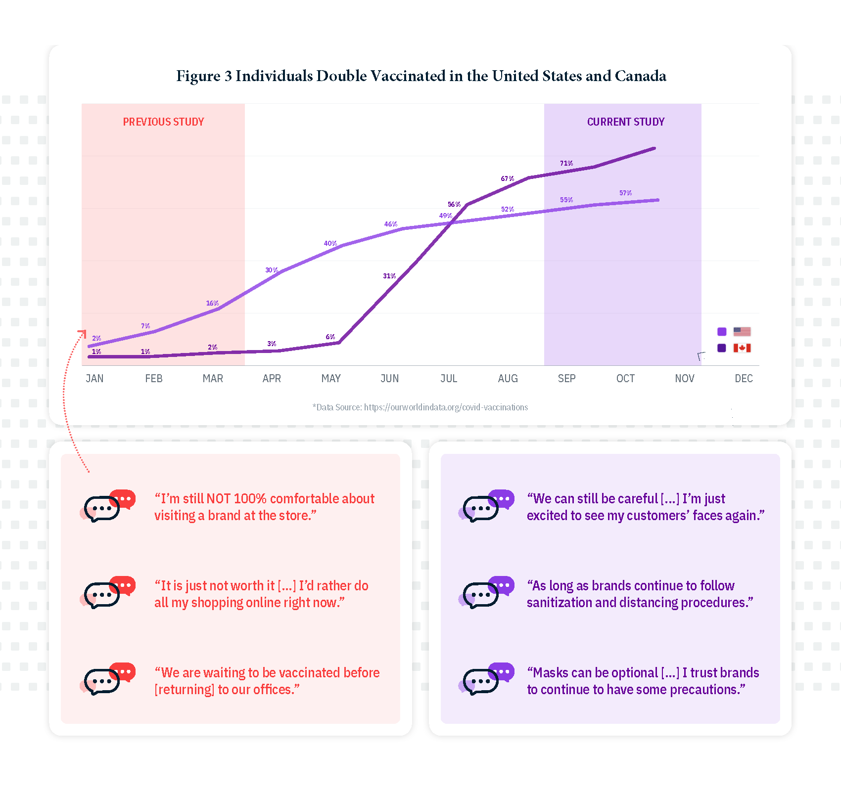 And when we dove deeper, it became clear that both consumers and employees were excited at the prospect of COVID becoming less of a factor in their experiences, especially compared to a year ago.