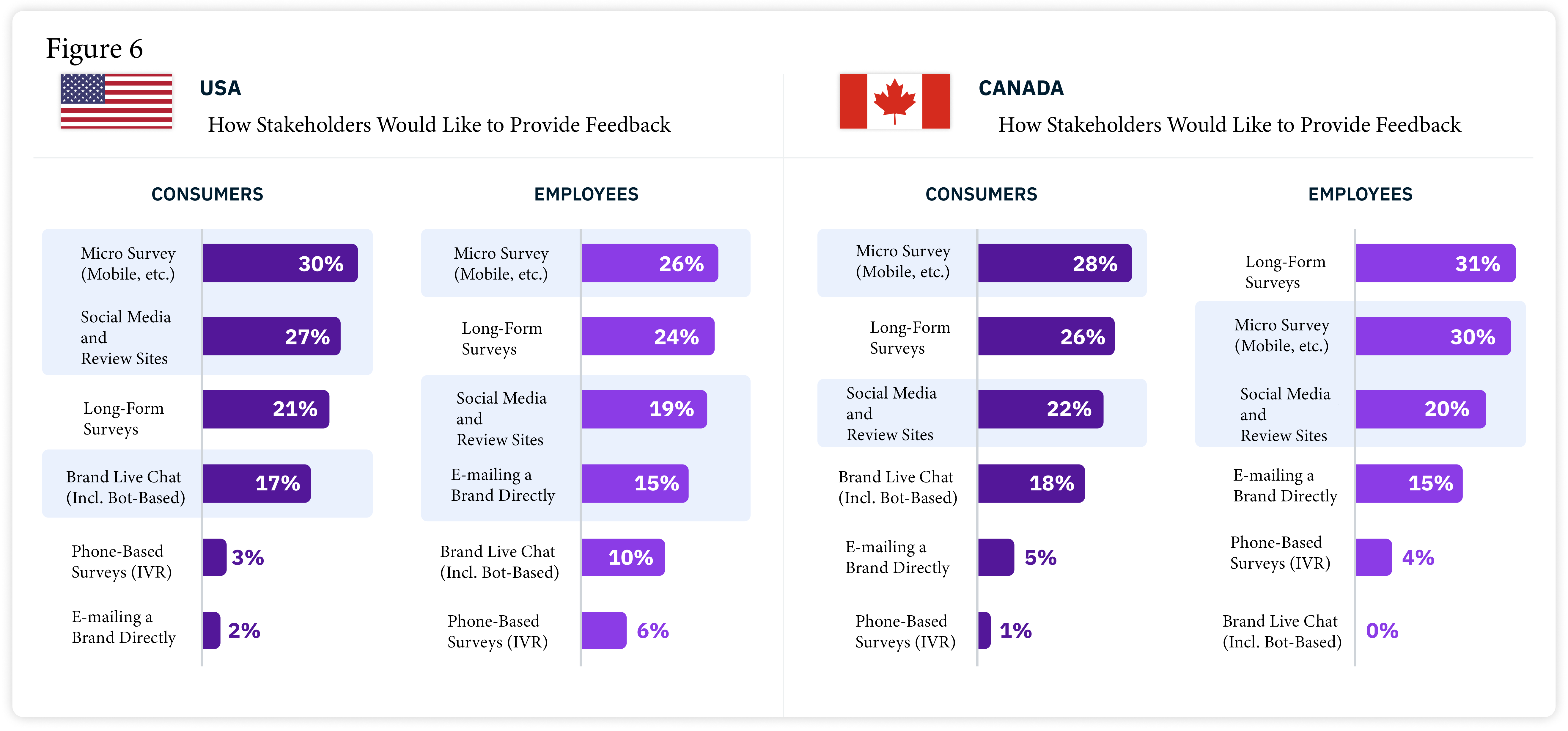To understand the role of surveys and other listening methods in 2022, we asked how stakeholders would like to provide feedback in the next year. Here are their responses: