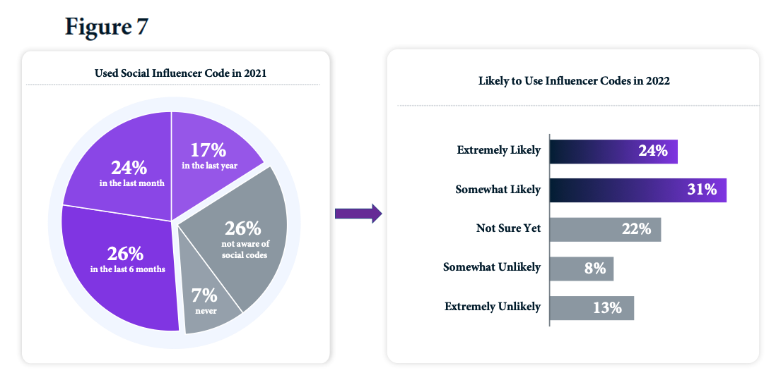 We asked consumers about whether they used an influencer code to make a purchase in 2021, and if they are likely to use influencer discount codes in the upcoming year.