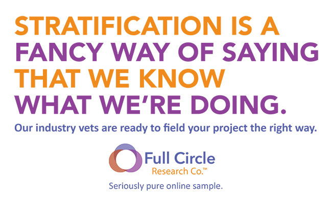 Twice-named on Inc. 5000’s list of Fastest-Growing Companies in America (2017 and 2019), Full Circle Research was the first and only U.S.-based online consumer sample provider to earn ISO 26362 certification, is currently ISO 20252-certified and remains the only company to offer HoNoR (Holistic Next-level ResearchTM). This enhanced survey experience is unprecedented and automated – a marriage of advanced technology, flexible community strategies and industry-leading quality controls that gives business decision-makers immediate access to the purest data in the industry. Full Circle’s foresight, agility and commitment to innovation translate into a uniquely proactive, consultative experience. To learn more, visit iLoveFullCircle.com.