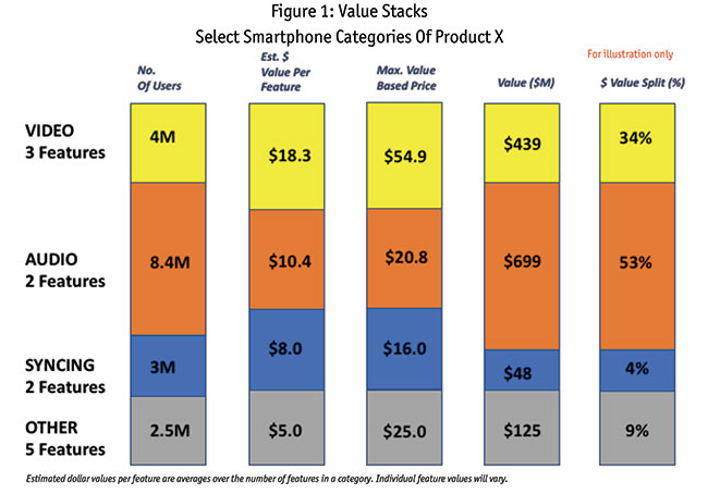 Consider a business situation where a global smartphone manufacturer is interested in assessing the monetary value of patented technology innovations that are part of an audio-video suite of features in one of its flagship products. Most, if not all, such features (although essential to the totality of benefits provided by the product and undoubtedly contributory in some way to its perceived differentiation) go unnoticed or are too technical for a mainstream smartphone consumer to impact its demand per se.
