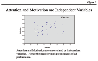 When validating our system, a lack of correlation was found between the attention-getting power of an ad and its motivational impact, as shown in Figure 3. Attention and motivation are independent variables! This lesson should be at the top of your teaching list.