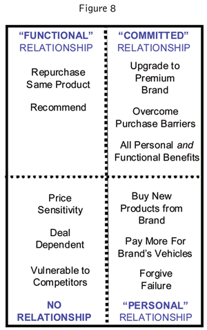 The bottom line is that both personal and functional connections are required for a fully committed relationship, but niche competitive positions can take advantage of - or be legitimized by - the type of relationships customer have with brands.