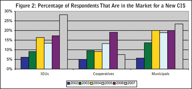 Since 2002 the number of utilities that are in the market for a new CIS has continued to grow. In 2007 19.6 percent of respondents indicated that they are in the market for a new CIS, up from 2006’s 17.3 percent (Figure 2).