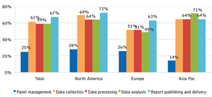 We also find it surprising that analysis is the software type that is least likely to be customized, since that is the part that produces the deliverable to the client - and one would think that that is where the market research firm has the most scope for differentiation and building added value.