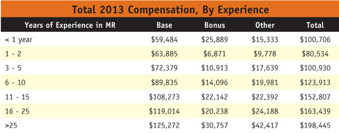 But corporate researchers have good reason to be as satisfied as ever. Maybe the best news of all for 2013 is that salaries are generally higher across all industries, regions and titles. In 2012, the average total salary hovered around $124,000. This year? $144,000. That’s an almost-14 percent lift in one year, suggesting that compensation is finally catching up with the stronger economy. The largest jump in any one category is that of those researchers who identify as owners/partners, whose salaries rose to $448,944 from $293,818 in 2012 (the first year we included this exact category).