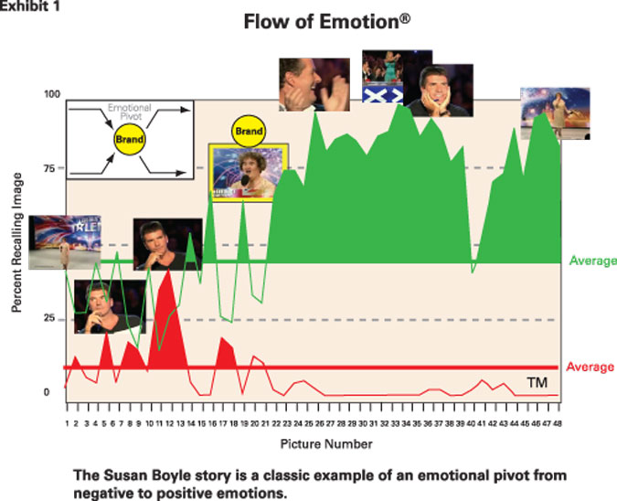 The six-minute video of Susan Boyle's performance on Britain's Got Talent is a paradigm of the power of emotional engagement. Boyle's appearance on the show and her subsequent launch into international stardom provide an opportunity to study this film as an instantly-familiar case history that can illuminate several general principles about how advertising works - namely how negative preconceptions and the element of surprise offer advertisers an inroad to changing consumer perceptions and using that shift to build an emotional, meaningful brand message.