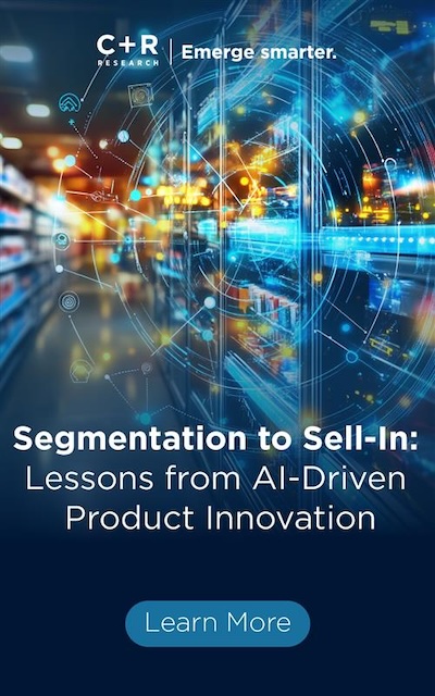AI unlocks powerful creativity in marketing and insights. C+R Research recently worked with a client eager to use AI to develop new snack ideas for two key retail partners. Using a newly launched AI shopper persona platform, built from a proprietary segmentation of U.S. grocery shoppers, C+R designed a multi-phase human and AI hybrid innovation process. Along the way, C+R gained valuable insights about applying AI for ideation projects. This approach allowed C+R Research to: