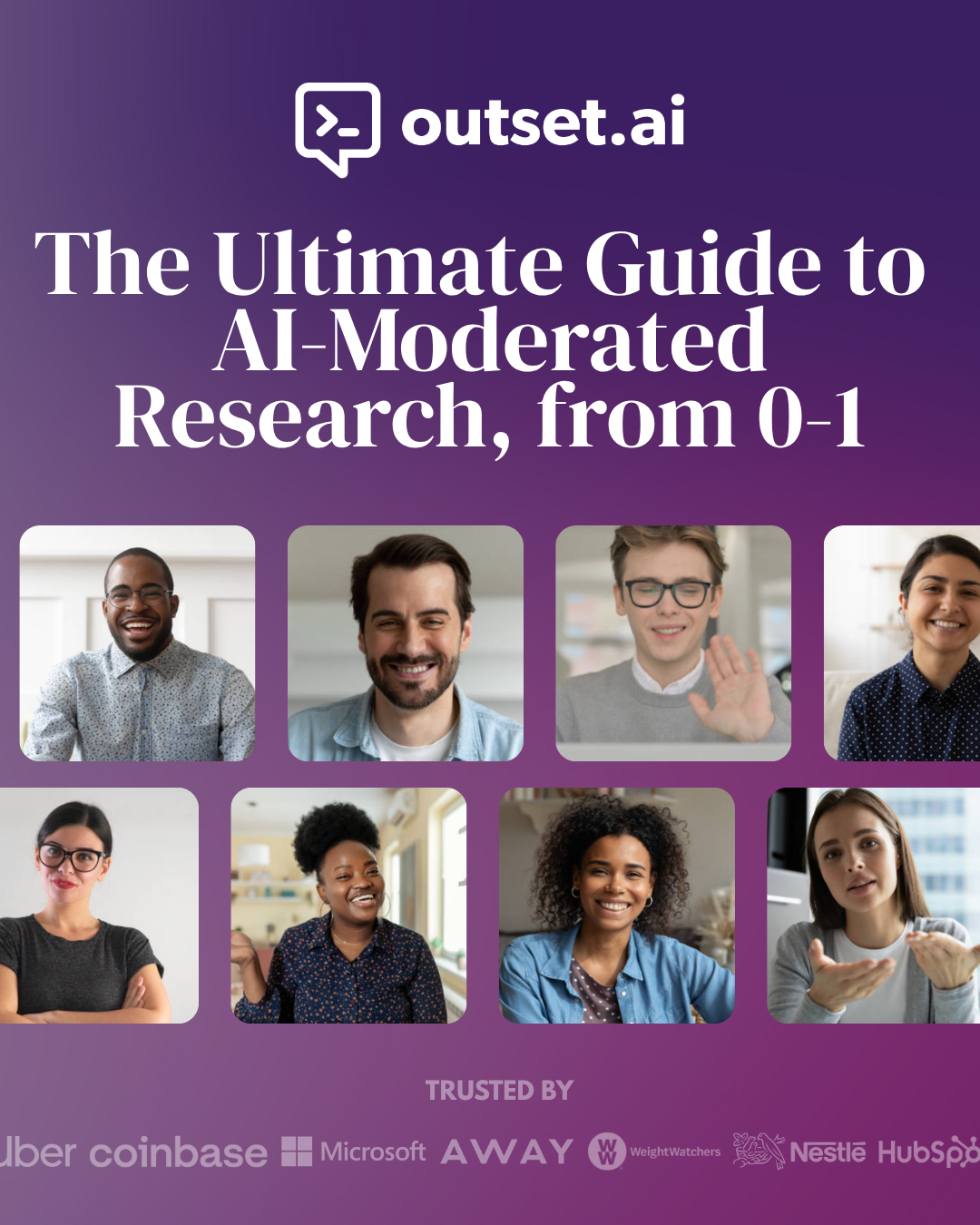 AI fatigue is real. So instead of more hype, here's something useful: Outset's Ultimate Guide to AI-Moderated Research, from 0-1 is built for researchers who want straight answers about where AI moderation actually fits – and how to get started. Inside: