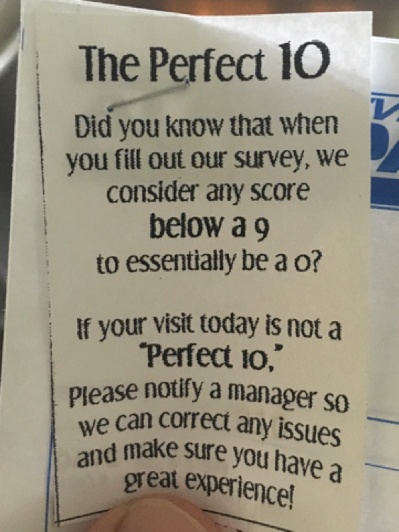 I posted the Perfect 10 photo (above) I took earlier this year on LinkedIn and I believe John Robison of JD Power and Associates addressed the situation best in his comment on my post: