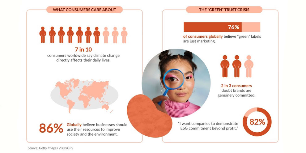 At the same time, skepticism is rising as 76% of consumers worldwide question the credibility of brands’ environmental claims, and two out of three globally doubt that companies are genuinely committed to sustainability. As pressure builds around accountability, the report underscores the need for brands to communicate with clarity, backing up ESG strategies with visual storytelling that is authentic and aligned with real‑world impact.
