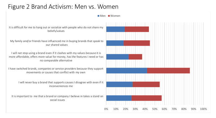 In breaking down the data by gender, it was apparent that women, more than men, were more exacting in ensuring that their brand choices match their values (Figure 2).