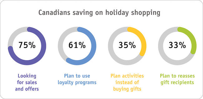 Canadians are finding ways to save this holiday season with 75% actively looking for sales and offers. According to Rakuten.ca, 61% plan to use loyalty programs, 35% will plan activities instead of purchasing gifts and 33% plan to reassess who they gift items to.
