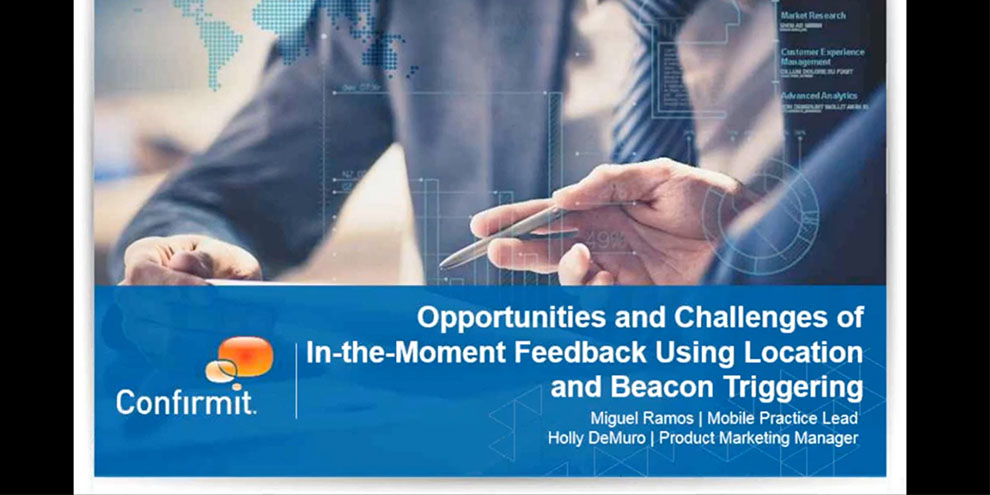Editor's note: Confirmit held a webinar on the opportunities and challenges of in-the-moment feedback using location and beacon triggering. Duration 54:54.