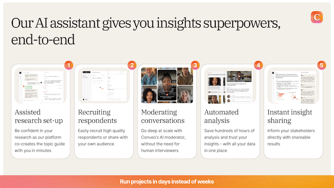 Figure 1: Conveo’s AI integrated into your insights workflow.