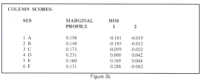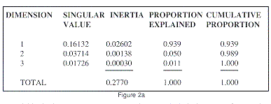Figure 2a shows the dimensional analysis of the Midtown Manhattan data. This and the following output were produced by the ANACOR procedure, one of a number of new market research procedures currently undergoing development and testing at SPSS, Inc.
