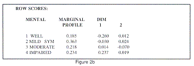 Figure 2b shows the optimal scores for the mental health status categories using a two-dimensional solution.