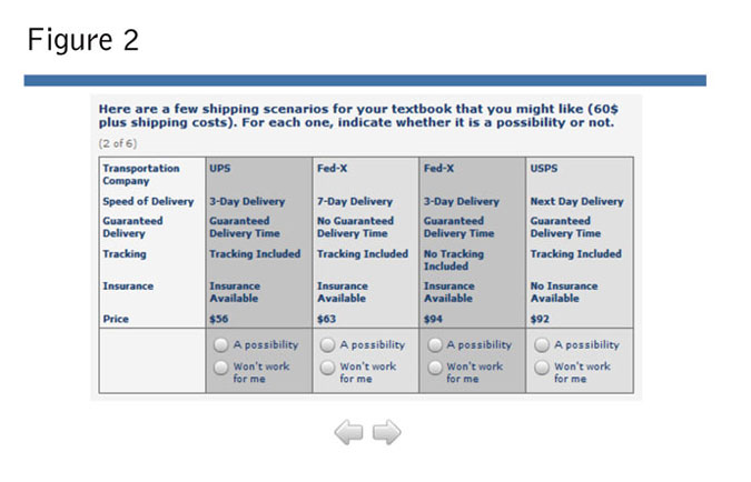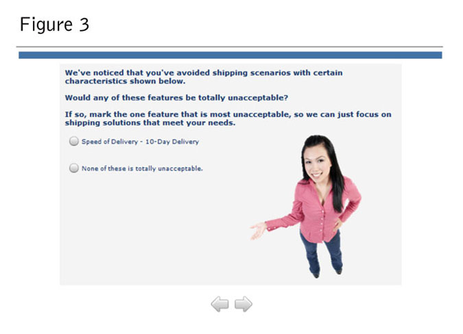 Because choice-based conjoint analysis studies ignore the customer’s non-compensatory decision-making process, many of the choice tasks in a traditional conjoint analysis study are irrelevant to respondents (Orme 2009). For example, a customer in a conjoint analysis study who “must-have” a two-day lead-time will find all of the choices that ask about a three-day or four-day lead-time to be irrelevant. Given this problem, it is likely that only one of the choices is feasible. Not only is this inconsistent with reality but it may also skew the results significantly.