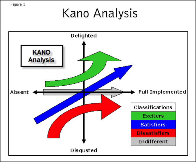 Our steakhouse example demonstrates how the simple but powerful Kano model is useful for understanding the difference between basic, performance and delighter features. By designing in and focusing improvement efforts on those features, you create customer delight, giving you a much greater chance of retaining your current customers and gaining new ones.