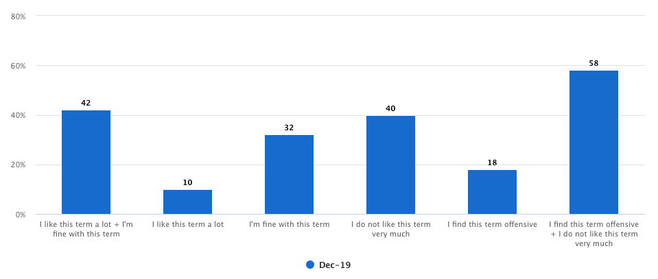 Almost 60% of respondents either don’t like the term very much or find it offensive.