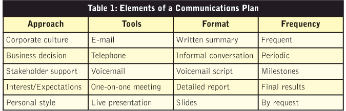 Be strategic about your project communications as well. Before moving too far forward, examine the level of support that each stakeholder provides for your project. Identify advocates and critics and develop a plan for dealing with each. For instance, if your boss is a strong supporter of your project, while the brand manager seems determined to poke holes in it, you’ll want to approach each party separately and differently. Your boss may sign off on your recommendations in an e-mail, while the brand manager may require a lengthy meeting to discuss his/her concerns and ideas.