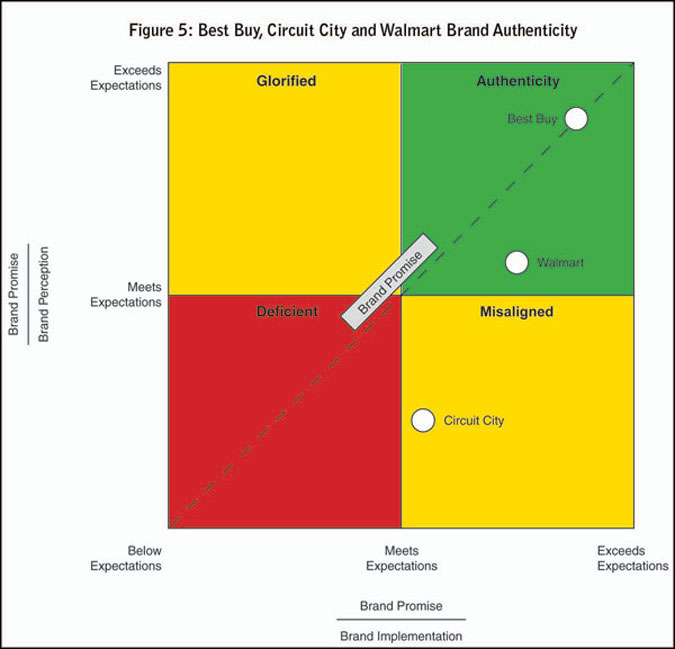 The Best Buy-Circuit City relationship illustrates the importance of a holistic approach because their brand propositions are similar. Best Buy’s success rests in part on alignment between the brand promise and its delivery of it. Similarly, Circuit City failed in part because it was unable to deliver the experience it promised customers.
