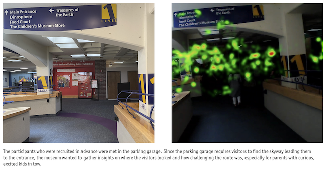 Prominent signage is key when navigating a new space. This is especially true when the majority of a location’s visitors are parents or guardians who are attempting to guide themselves while caring for young children. In partnership with the University of Southern Indiana (USI), the Children’s Museum of Indianapolis used eye-tracking to determine how effective their wayfinding signage truly was for first-time guests.