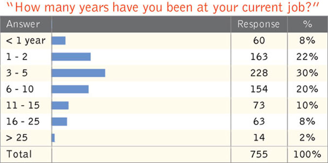 Perhaps surprisingly, over half (54 percent) expect their salary to increase in the next year; 42 percent expect it to stay the same and just 4 percent expect a decrease. Of those expecting an increase, 21 percent expect a raise of 1 to 2 percent; 27 percent see a 3 to 4 percent bump. The accompanying tables show survey results by industry, job title, region and company revenues.