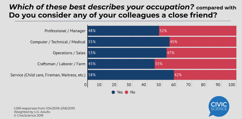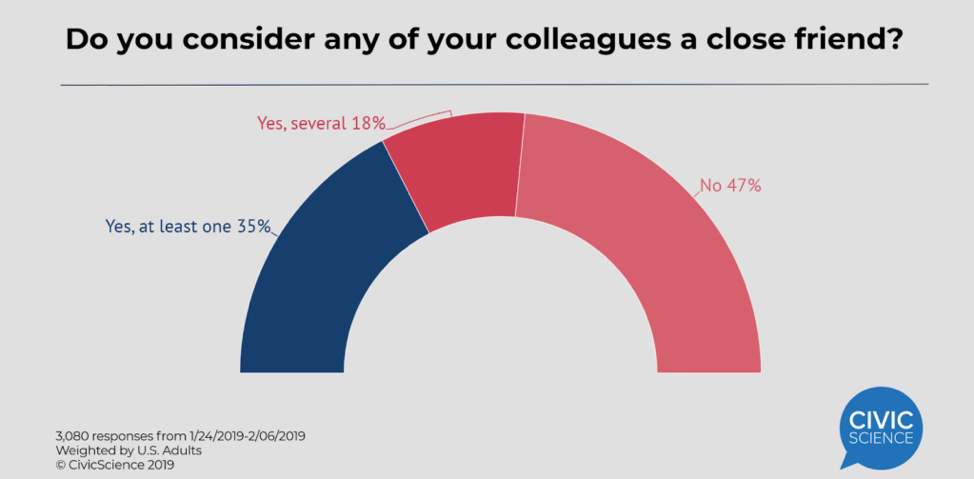 According to the data, over half of working U.S. adults consider at least one colleague a close friend.