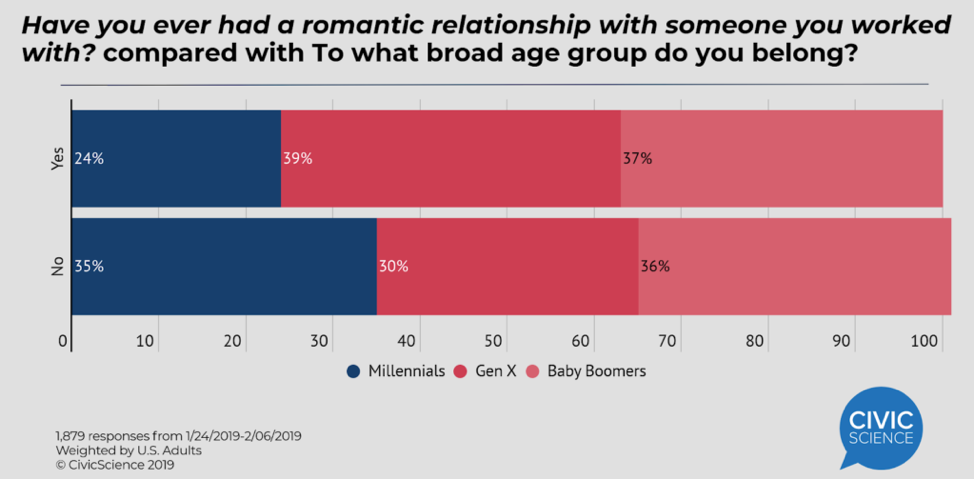 While those from all age groups have had a workplace romance, Gen Xers are the most likely.