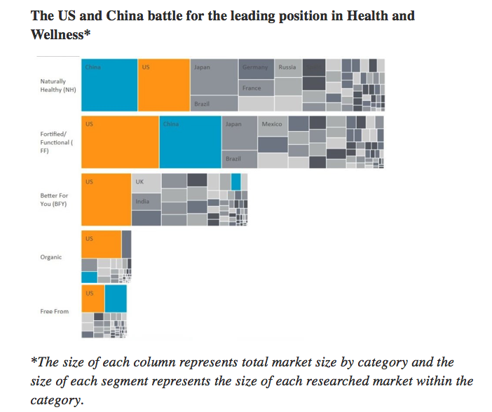 China has outpaced the U.S. in the NH category, with growth driven by natural mineral water, olive oil, 100 percent juice, high fiber noodles, nuts, seeds and trail mixes. Chinese consumers are showing increasing interest in these products due to rising income levels and health awareness, especially in first-tier cities.