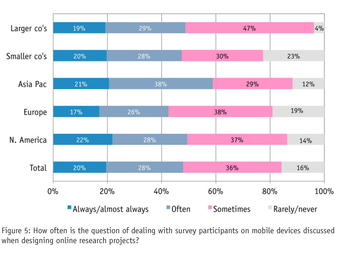 We asked companies “How often would you say that the question of dealing with survey participants on mobile devices is discussed when designing online research projects?”
