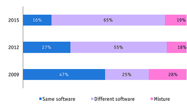 In 2009, most companies were making do with their panel software to run communities. At that time, there was little else on the market. Now, most firms are using entirely different software from their panel software (Figure 4).