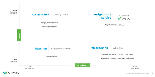 WEVO is a next-gen user experience platform that enables teams to effortlessly uncover customer insights. Leveraging high-volume user feedback and AI, WEVO delivers meaningful insights, enabling user research, product and marketing teams to create the right customer experiences, faster. Optimize every experience at wevoconversion.com.