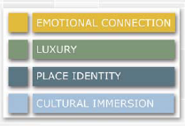 Extrapolating from the data, one might conclude that the desire for emotional connection is a natural outcome in the evolution of global travel. Logical, prescriptive, often defensive travel tactics have been replaced with adventurous pursuits, personal concierges and iPhones. Today’s intrepid travelers follow their hearts and are impressed by experiences that appeal to their imaginations and desires. This is particularly true among an affluent population with a high prevalence of travel for both business and leisure.