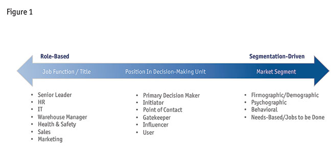 Marketing professionals take different approaches in defining buyer personas. Some of the most common approaches run along a spectrum of role-based personas through to segmentation-driven personas (Figure 1).