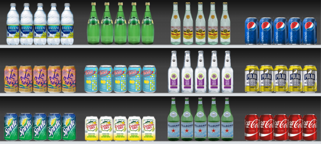 Eighty-four percent of participants saw the La Croix cans on the shelf, more than any other brand on the shelf. It took participants only 2.4 seconds to find La Croix, faster than every other brand except for Topo Chico (2.3 seconds). In the survey portion, 17 percent of the total participants found La Croix to be the most visually appealing packaging, the highest of all the brands on the shelf. La Croix had the fourth highest brand recall at 37 percent only behind three of the most recognizable soda brands: Coke, Pepsi and Sprite.