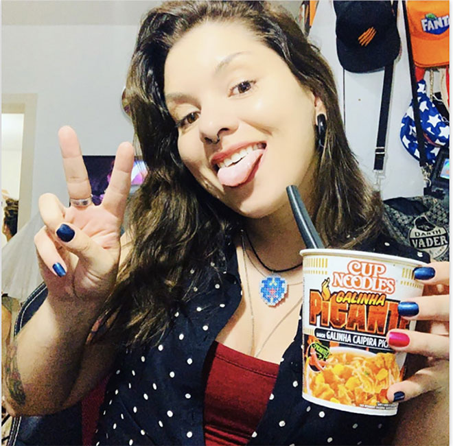 - Instant noodles are a part of a cultural code (’90s fashion). Young people love taking selfies with them.
