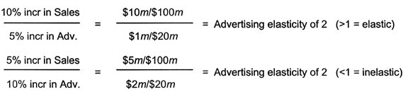 My advice: avoid ever using the phrase “advertising elasticity.” Put everything on an ROI basis. Talk about a positive or a negative return on the investment in advertising. That second example may have been inelastic, but it showed a positive return on the additional investment in advertising.