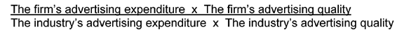 Note that quality is included as a multiplier, just as it was in simpler versions of the model. The other elements in the marketing mix are expressed in essentially the same manner. Price is usually expressed as a ratio of the firm’s average price to the average price in the industry. The model is set up to predict the firm’s share of industry sales rather than the firm’s dollar sales.