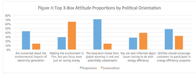 2. The impact of political ideology. It is also important to recognize that some customers simply do not support the adoption of more energy-efficient technologies, especially for reasons associated with environmental impact. It is not the case that these customers see themselves as less informed about these issues; quite the contrary. They simply do not believe in the importance of energy efficiency or its environmental benefits.