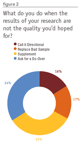 - Supplement. When out of time and additional budget, respondents say they will use secondary or past research to augment the bad research. Some may add qualitative research to help the situation or just vow to not use the same methodology again.