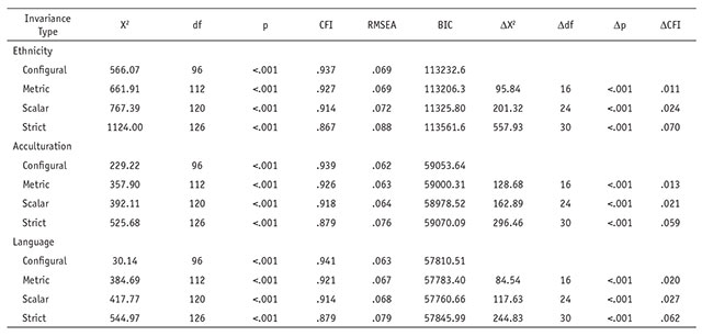 Cross-cultural research will inevitably continue as information needs continue to span cultures and national borders. Although cross-cultural studies that do not discuss measurement invariance are informative, they may not be authoritative, as the scientific community cannot ascertain if the reported difference is attributable to true differences of the latent constructs or if they are artifacts of the measurement approach. Consequently, conducting measurement invariance analysis should be a necessary precondition when performing cross-cultural investigations that involve composite scales. By comparing and contrasting how additional cultures interact with survey assessments, researchers can be more culturally competent and inclusive in decision-making processes.