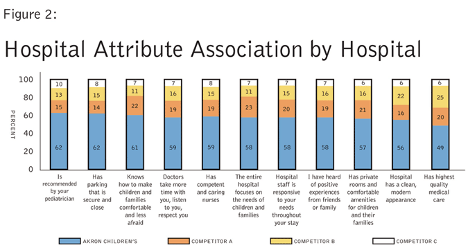 When asked about their perception of Akron Children’s Hospital, respondents perceived the hospital to offer a personal approach and greater communication, respect and caring than other hospitals who treated patients as “numbers.”