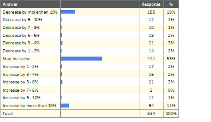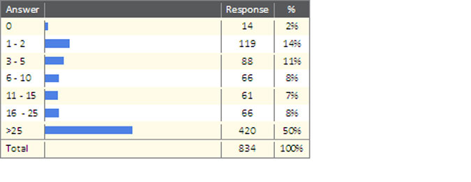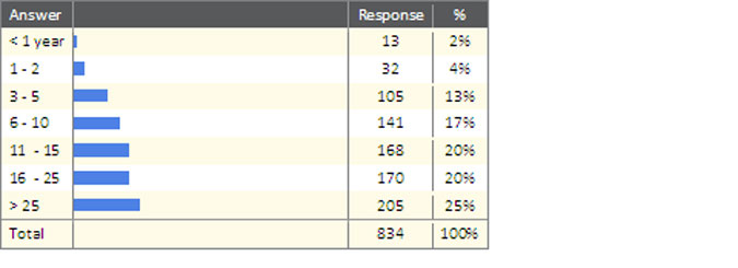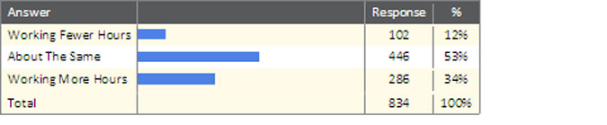But while salaries generally held steady or increased, the yearly bonus took a bigger hit. Fifty-three percent reported the same bonus for 2009 as in 2008, but for 19 percent of researchers, bonuses decreased by more than 10 percent. On the whole, 28 percent reported receiving smaller bonuses in 2009 and only 20 percent received larger bonuses. Raises and bonuses may not have been as plentiful as they would in a booming economy, but the survey also showed that researchers are earning their keep. Only 12 percent of provider-side respondents reported working fewer hours than in the past, and 34 percent are working even more. Fifty-three percent are putting in about the same amount of time as in the past.