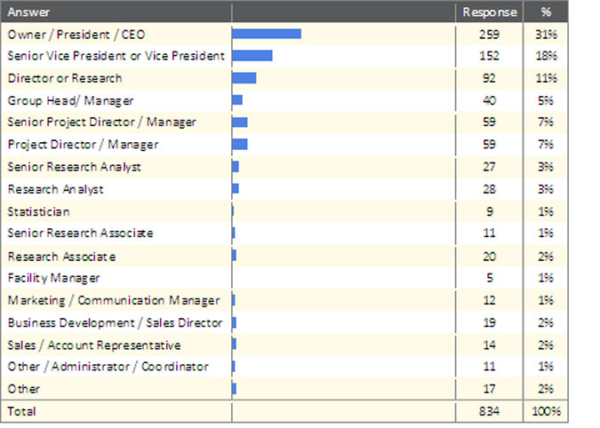 "The profession seems to have been devalued over my years in it. There are fewer senior researchers at our companies. Clients seem increasingly junior and clueless (this unfortunately seems to be the best descriptor) about the importance of professional and well-designed marketing research."