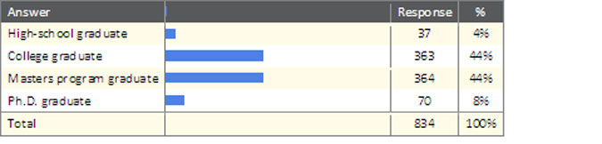 Not surprisingly the highest-paid researchers are the most satisfied, with researchers claiming to be very satisfied earning the most money annually ($147,295, including bonuses). The high-pay, high-satisfaction trend continues with researchers who are satisfied ($110,877) and somewhat satisfied ($129,421). The earnings gap between the somewhat satisfied and somewhat dissatisfied is just over $40,000. The real outlier of the group, however, is the very dissatisfied camp, which earns on average a shocking $27,871 more than those in the somewhat dissatisfied group and only a few thousand less than those who are somewhat satisfied. While there seems to be a correlation with pay and job satisfaction, one might speculate that earning a high salary in this only-now-rebounding job market is enough to keep researchers at jobs they dislike.