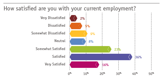 While past surveys show that the research industry went through bouts of dissatisfaction in the workplace (2011, specifically), job satisfaction continues to be on par with our recent surveys. The 2017 data shows that about 76 percent reported that they are somewhat satisfied, satisfied or very satisfied with their current employment. As in previous years, we received several comments that highlighted the importance of non-monetary or non-traditional benefits on job satisfaction: