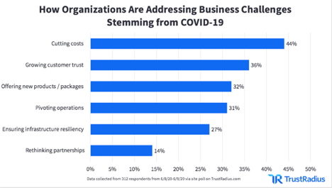 Over the past few months, TrustRadius has collected and analyzed thousands of data points around organizations’ responses to the COVID-19 pandemic. This post presents highlights from B2B research performed by TrustRadius in partnership with tech industry analyst firm IDC. The full report can be found here.